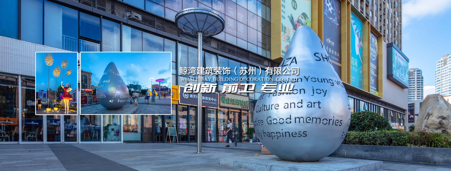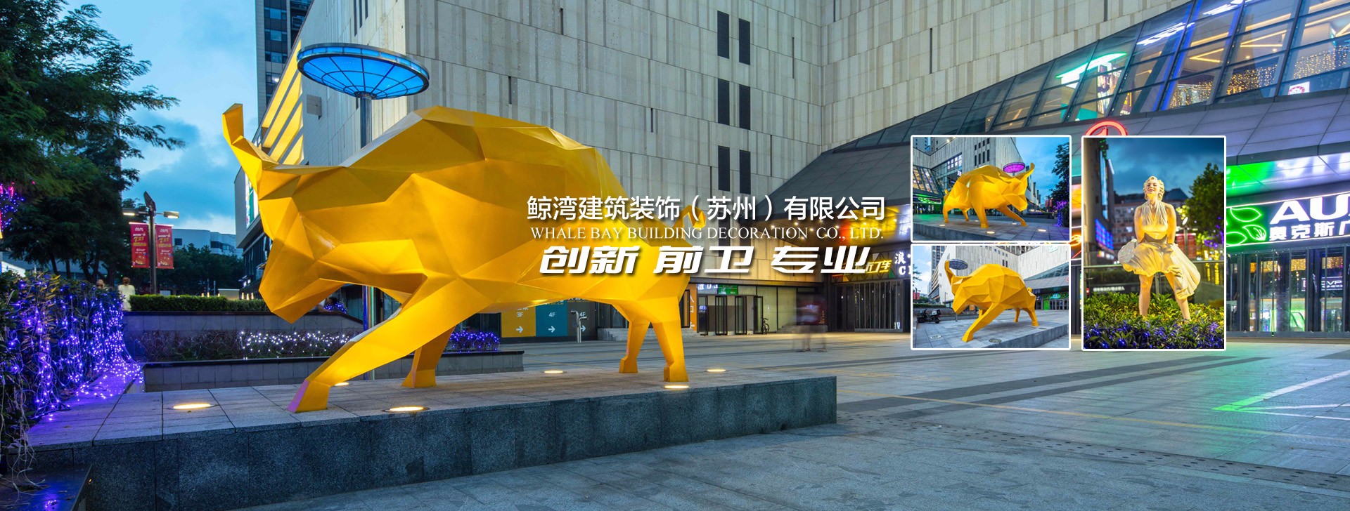 鯨灣建筑裝飾(蘇州)有限公司,是一家專(zhuān)注于雕塑軟裝、互動(dòng)裝置藝術(shù)設(shè)計(jì)制作的創(chuàng)意型服務(wù)企業(yè)。工作團(tuán)隊(duì)來(lái)自中央美術(shù)學(xué)院、中央戲劇學(xué)院、清華美術(shù)學(xué)院、上海戲劇學(xué)院、丹麥科技大學(xué)、英國(guó)巴斯大學(xué)等國(guó)內(nèi)外藝術(shù)、科技院校。團(tuán)隊(duì)以大膽的藝術(shù)創(chuàng)新、前衛(wèi)的藝術(shù)理念、精湛的制作方式、專(zhuān)業(yè)的執(zhí)行團(tuán)隊(duì),而獲得業(yè)內(nèi)的一致好評(píng)。為的是提升公司在雕塑創(chuàng)意與互動(dòng)裝置領(lǐng)域核心競(jìng)爭(zhēng)力,以迎接藝術(shù)市場(chǎng)未來(lái)的機(jī)遇與挑戰(zhàn)?!? 我們致力于觀(guān)察和研究藝術(shù)市場(chǎng)的瞬息萬(wàn)變■ 我們用各大頂尖藝術(shù)學(xué)院的審美視角引導(dǎo)藝術(shù)市場(chǎng)前沿■ 我們善于集合多元化的平臺(tái),整合專(zhuān)業(yè)團(tuán)隊(duì),打造專(zhuān)屬品牌■ 我們一直以客戶(hù)的要求為基準(zhǔn),在不斷前進(jìn)■ 我們攻克重重難關(guān),打造一次次經(jīng)典...